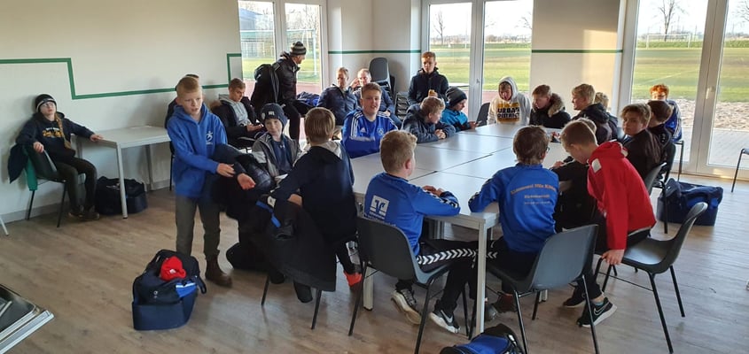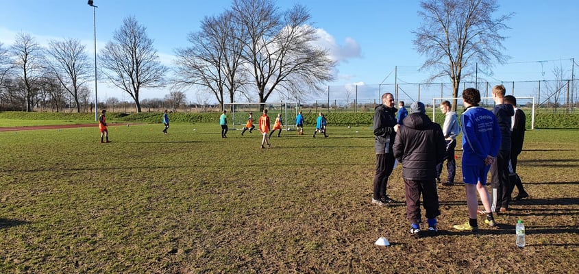 Am Nachmittag stand dann das D-Jugend Training im Mittelpunkt. Wir hatten die D-Jugend der SG Geest/Mitteldithmarschen auf dem Sportplatz am Otto-Nietsch Weg zu Gast. Jeder Trainer und jede Trainerin hatten jetzt die Aufgabe eine kurze Trainingsform mit den Spieler*innen durchzuführen. In der anschließenden Feedback-Runde bekamen die Trainer*innen sowohl von der Gruppe als auch von den Referenten Sascha Willhöft und Nico Schlüter Anregungen.