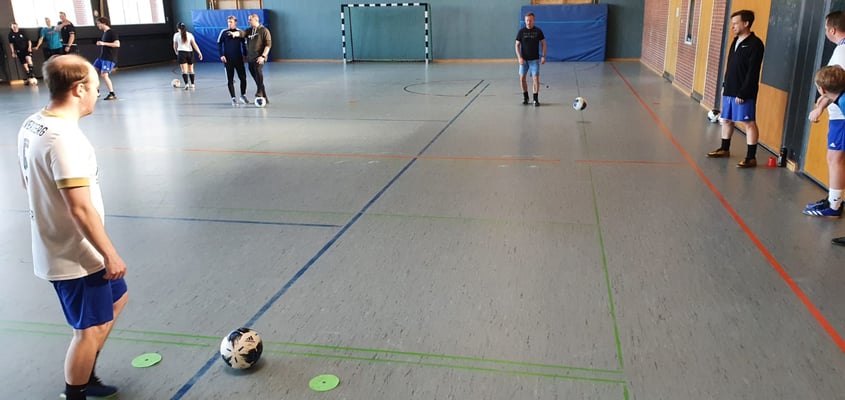 Bei der C-Lizenzausbildung am letzten Februar-Wochenende standen 2 großen Themen auf dem Programm. Am Vormittag war Verbandssportlehrer Michael Hopp zu Gast und erarbeitete mit den Trainer*innen Übung- und Spielformen anhand von Spielszenen. Hier ging es u.a. um das Verhalten des Angreifers, wenn er seinen Gegenspieler im Rücken hat.